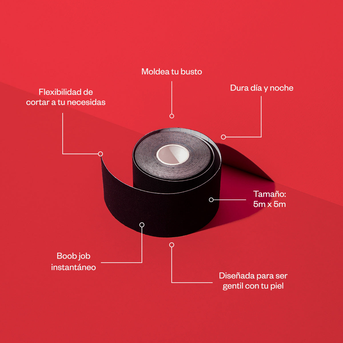 Esta cinta adhesiva en tono nude está diseñada para levantar, moldear y sostener el busto sin necesidad de brasier, incluso en escotes profundos, espaldas descubiertas o cortes asimétricos.